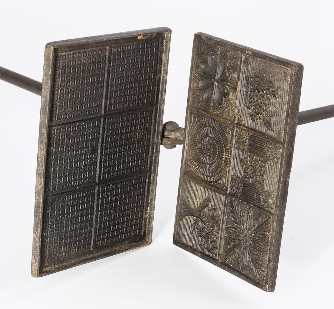 Zange mit Arretierung, Rechteck-Waffeleisen für 6 Gebäcke mit vegetabilen Motiven .