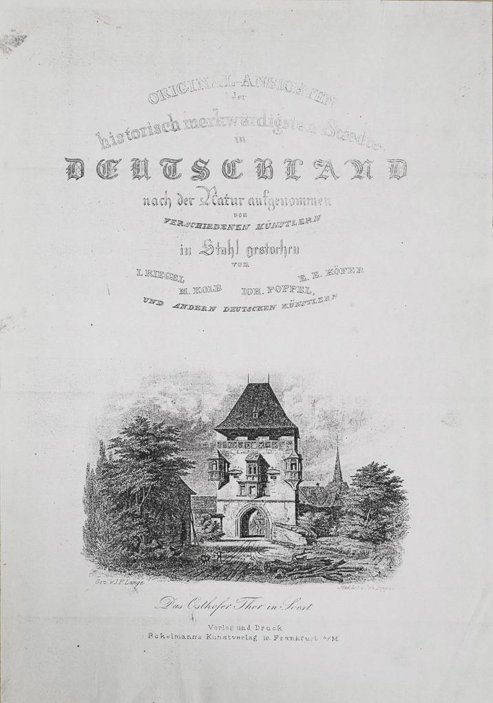 Große Loseblatt-Sammlung mit 150 "Original-Ansichten der historisch merkwürdigsten Staedte in Deutschland nach der Natur aufgenommen von verschiedenen Künstlern in Stahl gestochen I. Riegel, M. Kolb, Ioh. Poppel, E. E. Höfer und andern deutschen Künstlern", Bokelmann`s Kunstverlag in Frankfurt a.M., mit Inhaltsverzeichnis, von den verzeichneten Stahlstichen fehlen laut Angabe: Nr.1, Nr. 5, Nr. 9, Nr. 9, Nr. 10, Nr. 83 und Nr. 129, 2x vorhanden sind: Nr. 53 und Nr. 54. Minimal stockfleckig, griff- und knickspurig.
