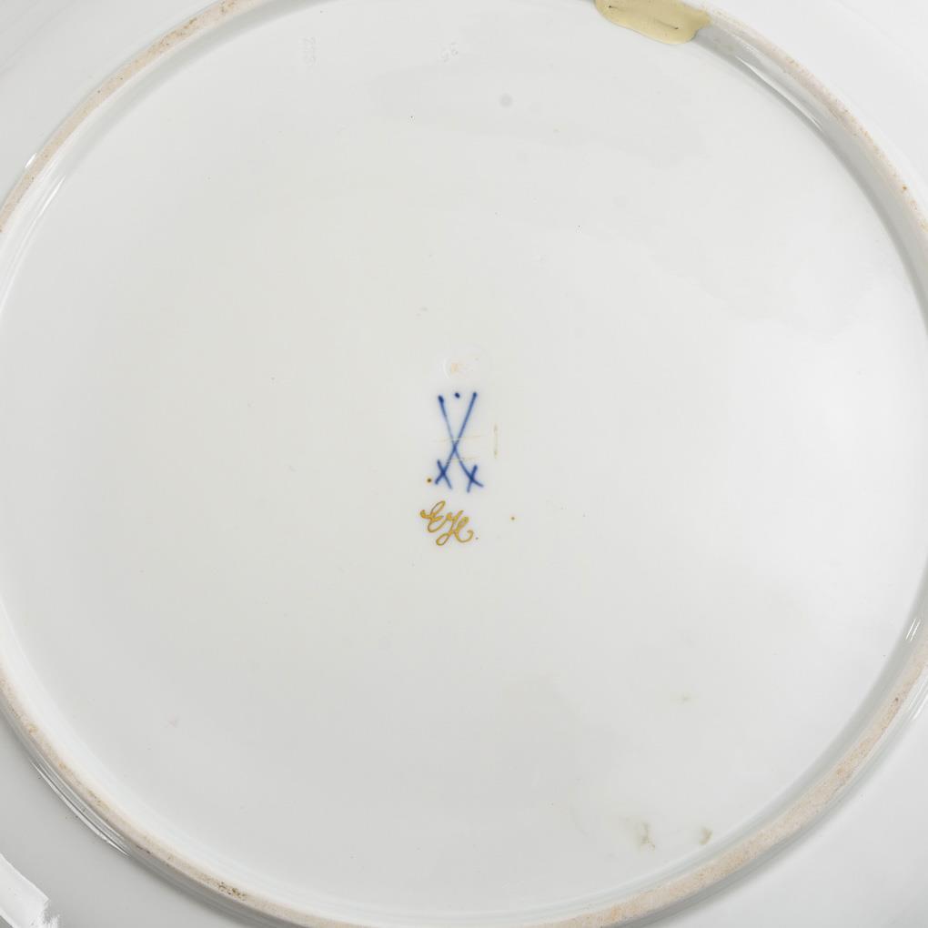 Schwertermarke mit Punkt, Pfeiffer-Zeit, 1924-1934, 3 Schleifstriche. Hausmalerei. Malersignatur "EH".
