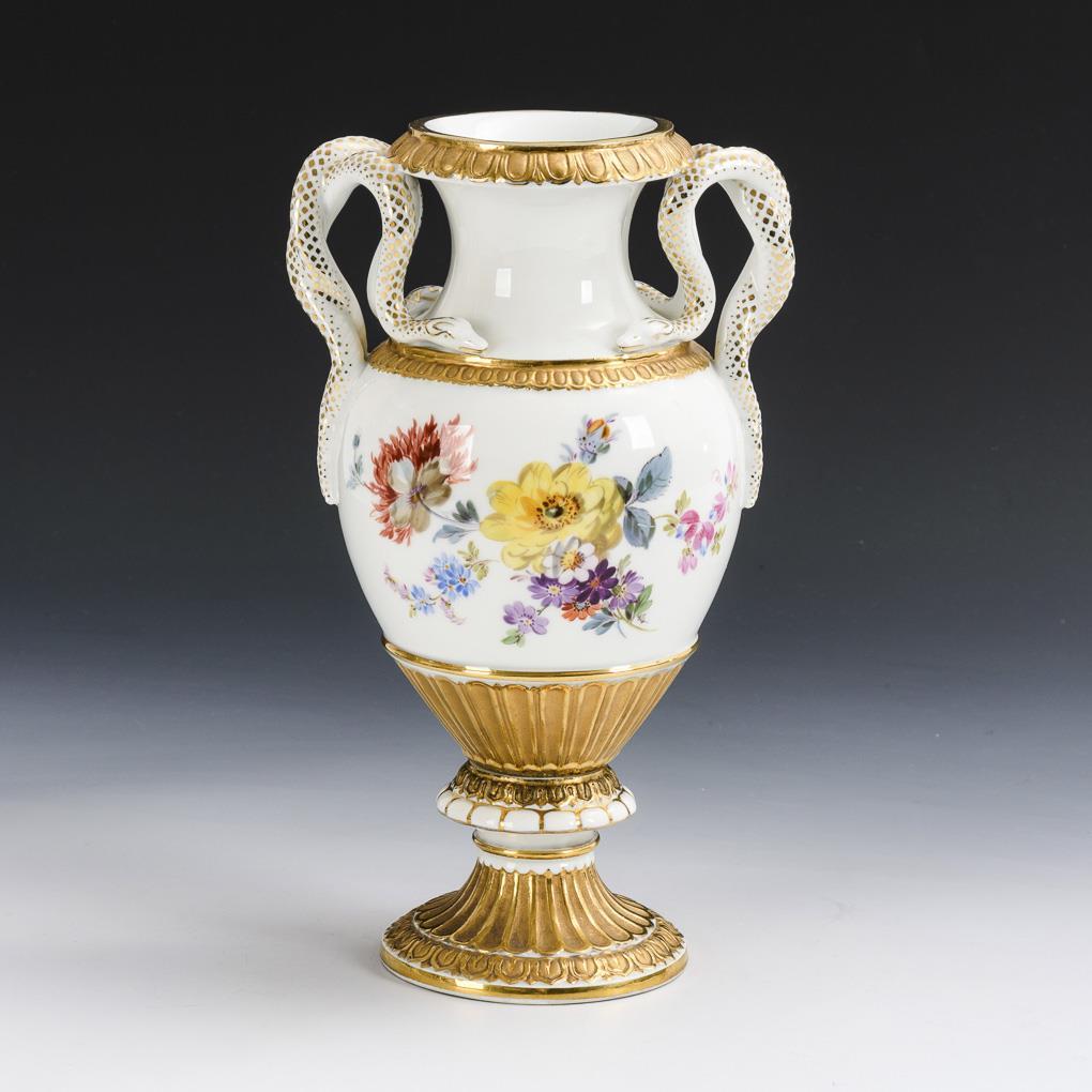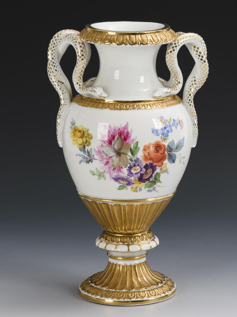 Schlangenhenkelvase mit Blumenmalerei. Meissen.