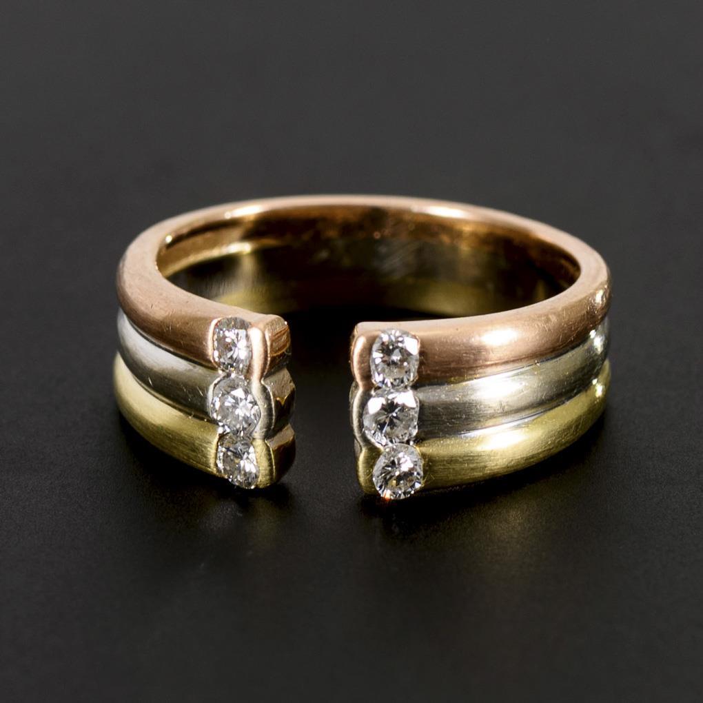 Gelbgold/Weißgold/Roségold 585 gestempelt. Ringgröße 56. Brillanten zus. 0,36 ct. 5,3 g.