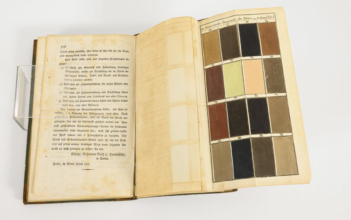 "Oder Sammlung ... der Wollen-, Seigen, Baumwollen- und Leinenfärberei, der Zeugdruckerei, und der Kunst zu bleichen".