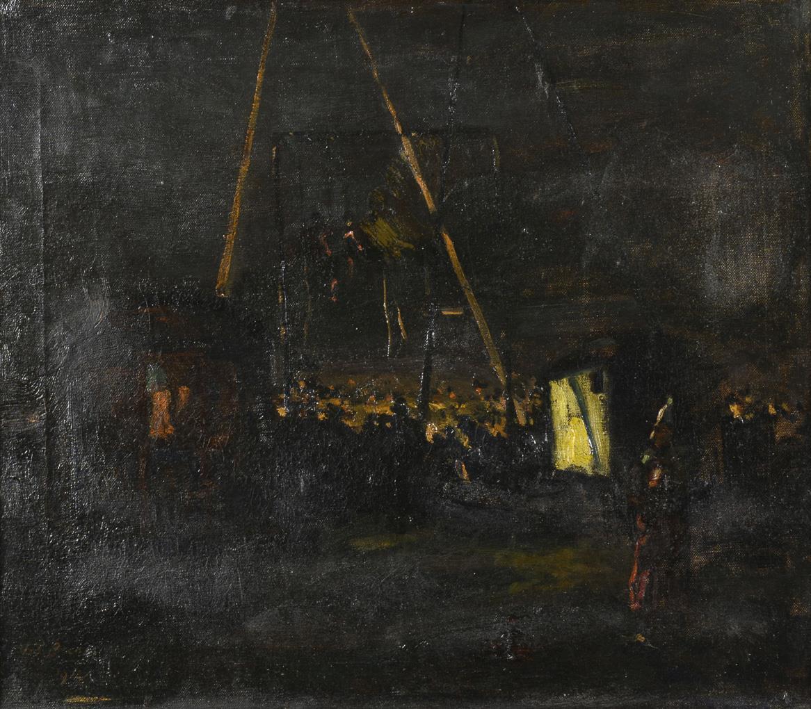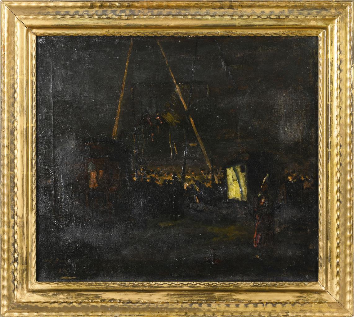 Undeutlich signiert: Nächtliche Szene mit Gauklern