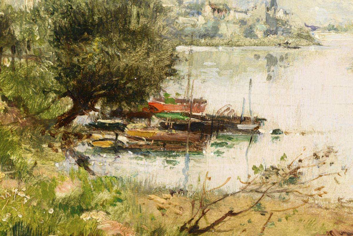 Öl/Holz. Rechts unten signiert, verso signiert mit undeutlichem Titel.