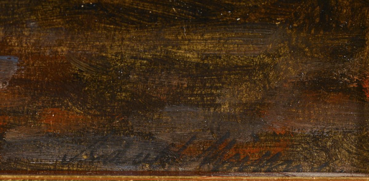 Öl/Malkarton. Rechts unten undeutlich signiert.