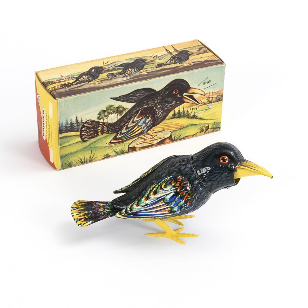 Mechanischer Rabe im Originalkarton. Georg Köhler, Nürnberg.