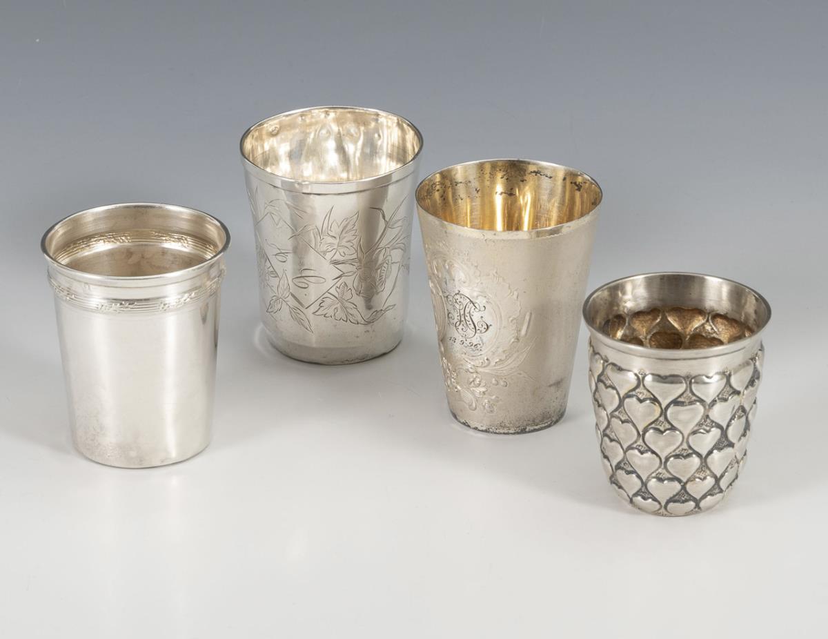 3x Silber, 1x Metall. H 6,5 - 8 cm. 215 g (3 Becher).
