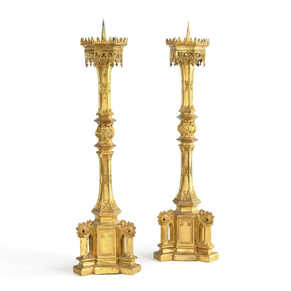 Paar große neogotische Altarleuchter