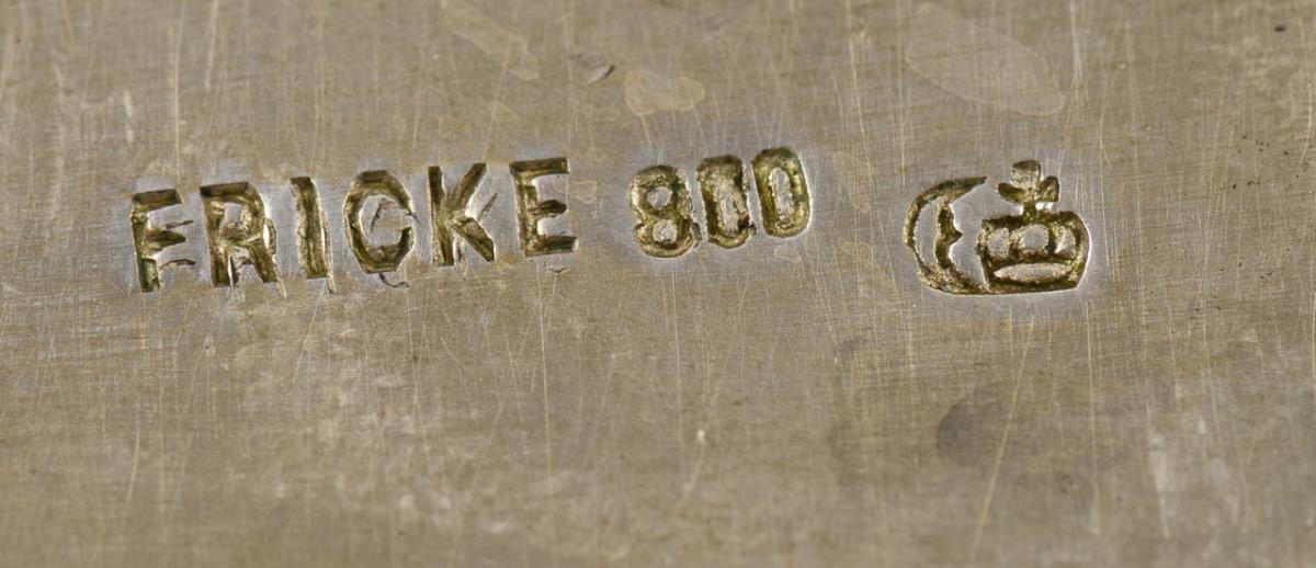 Juwelierstempel Fricke/800/Halbmond/Krone gepunzt. Um 1900-20.