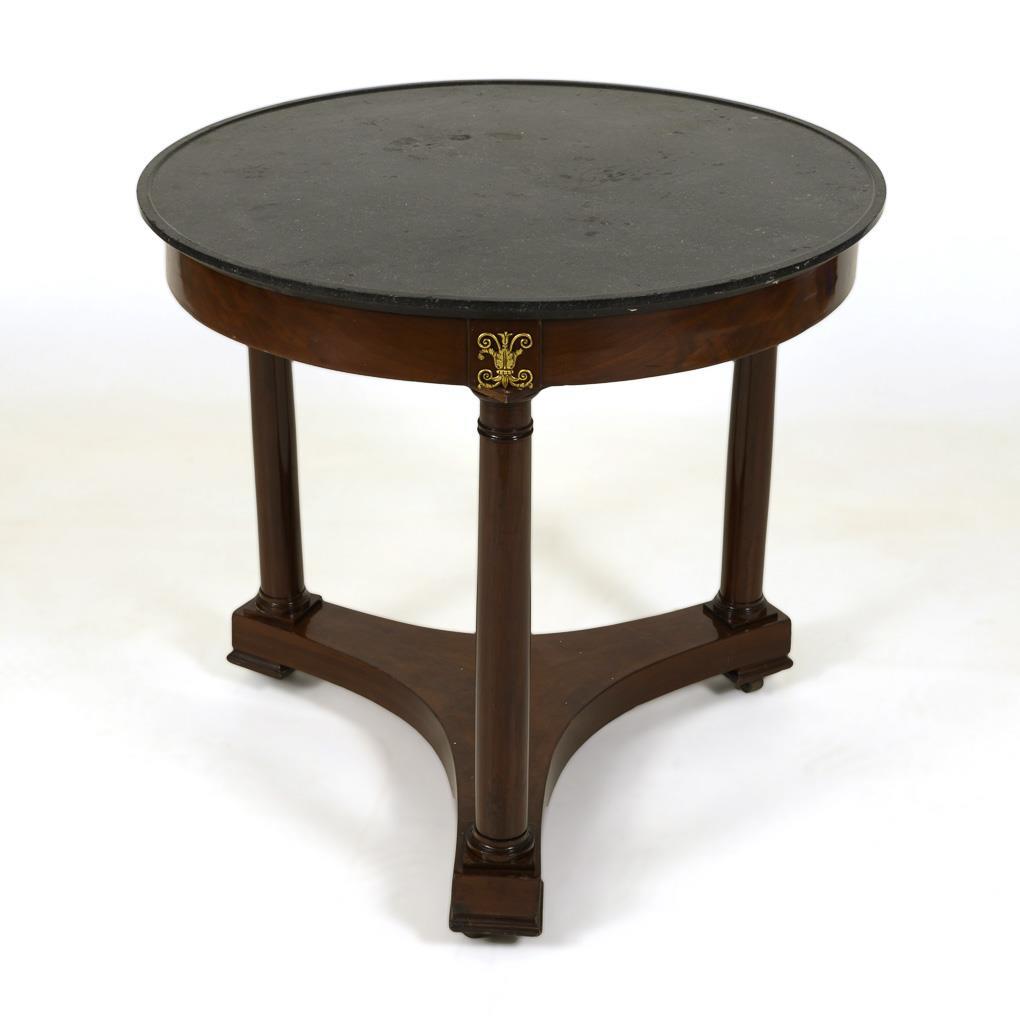 Runder Biedermeier-Salontisch mit schwarzer Marmorplatte.