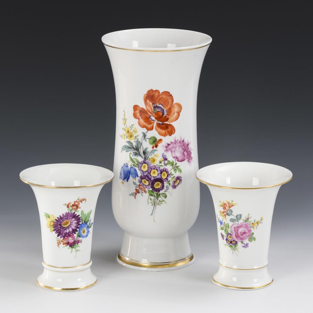 3 Vasen mit Blumenmalerei. Meissen.