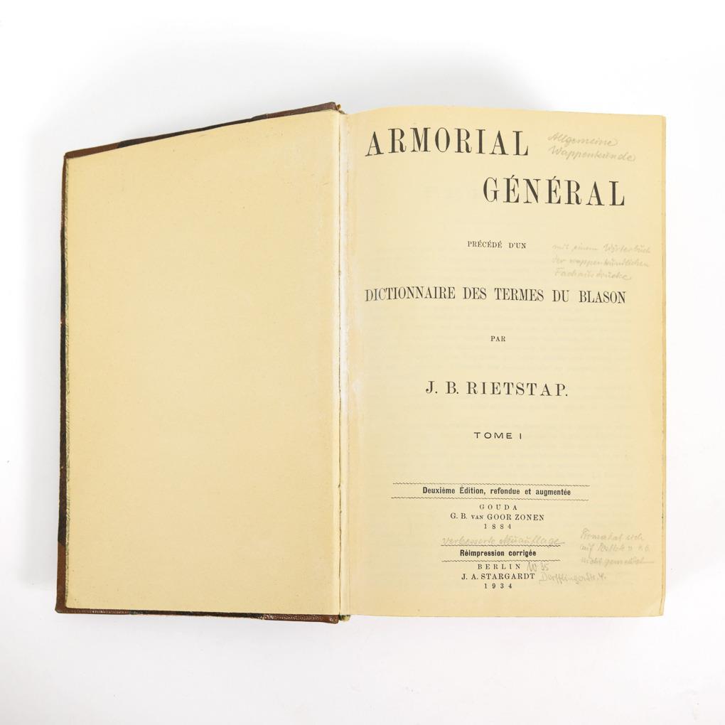 Nachdruck des Lexikons der Wappenkunde in französicher Sprache, inclusive des Supplementteiles. 1149 und 1316 Seiten, im Halbledereinband.