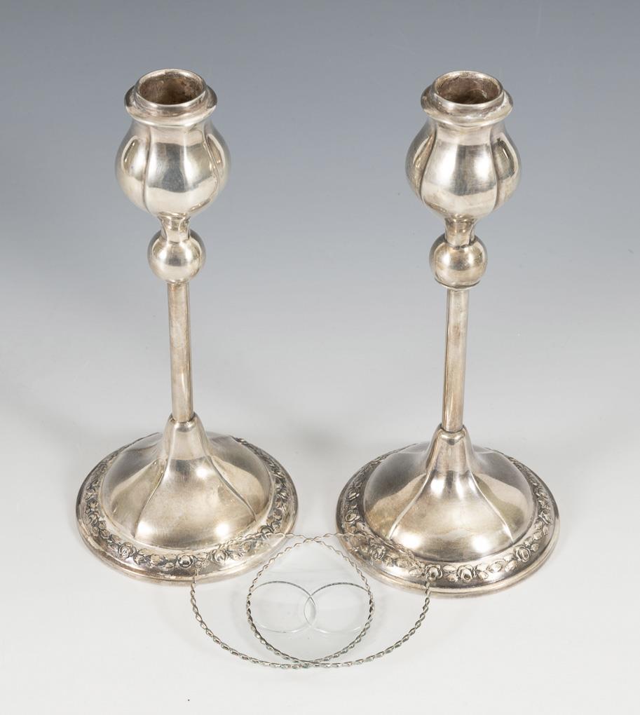 Paar silberne Kerzenleuchter. Gebrüder Kühn, Schwäbisch Gmünd.