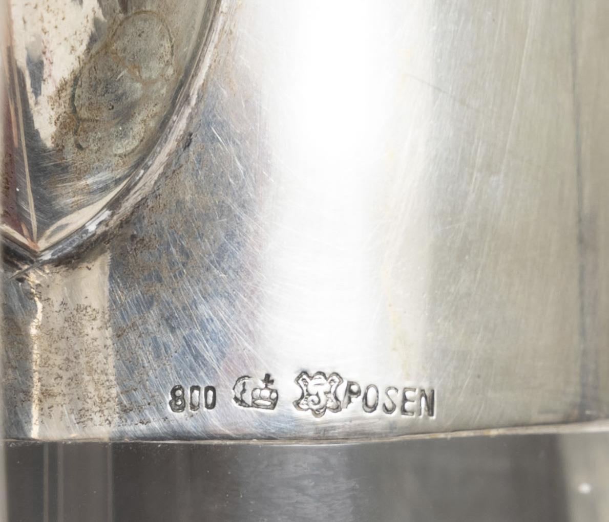 Jugendstil-Glaskaraffe mit Silbermontierung. Lazarus Posen, Frankfurt/Main.
