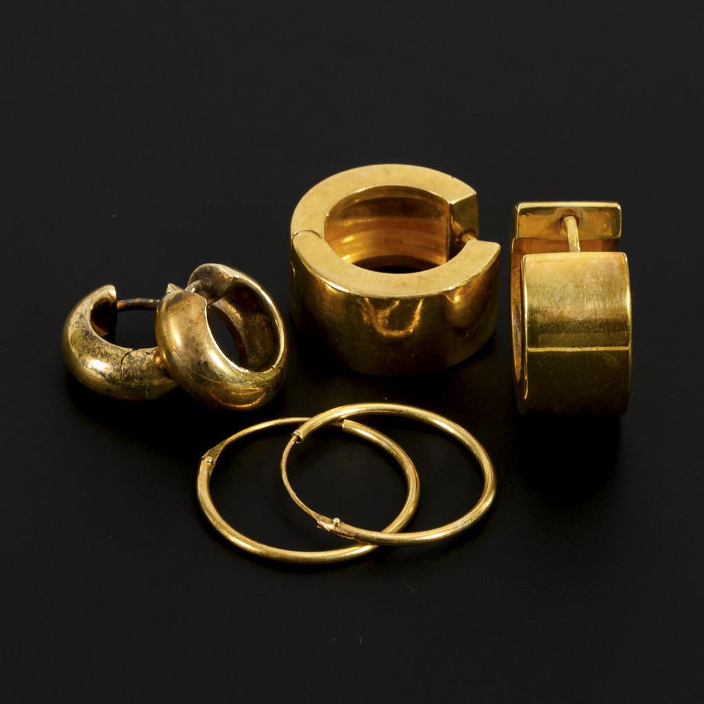 2 Klappcreolenpaare und zartes Creolenpaar mit Steckbügel.