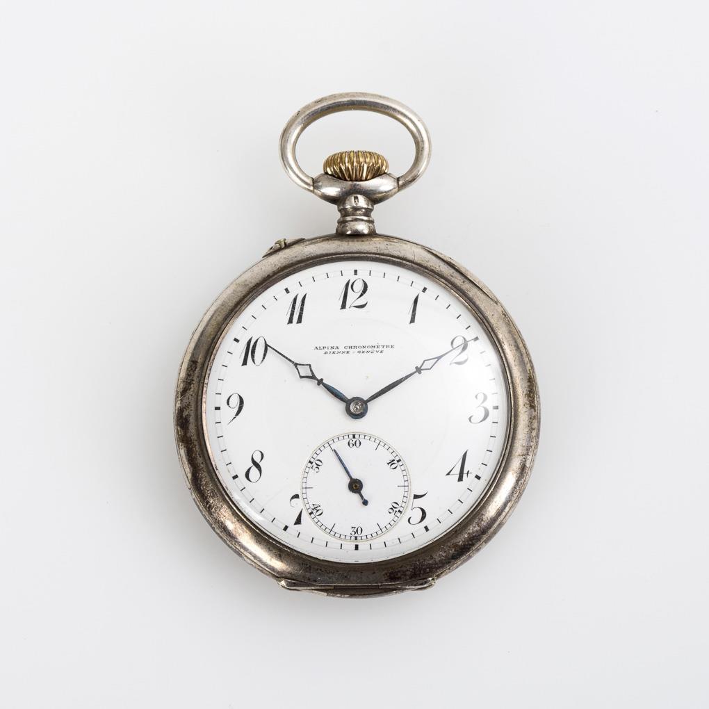 Silberne Taschenuhr in Etui. Alpina / Union Horlogère.