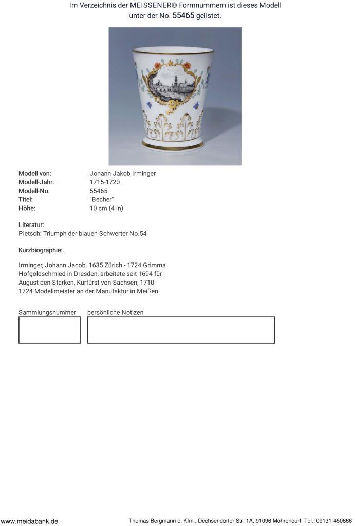 Schwertermarken, 1. Wahl, Pressmarken, Malermarken, goldene Titel.1998-1999.Modell-Nr.: 55465.