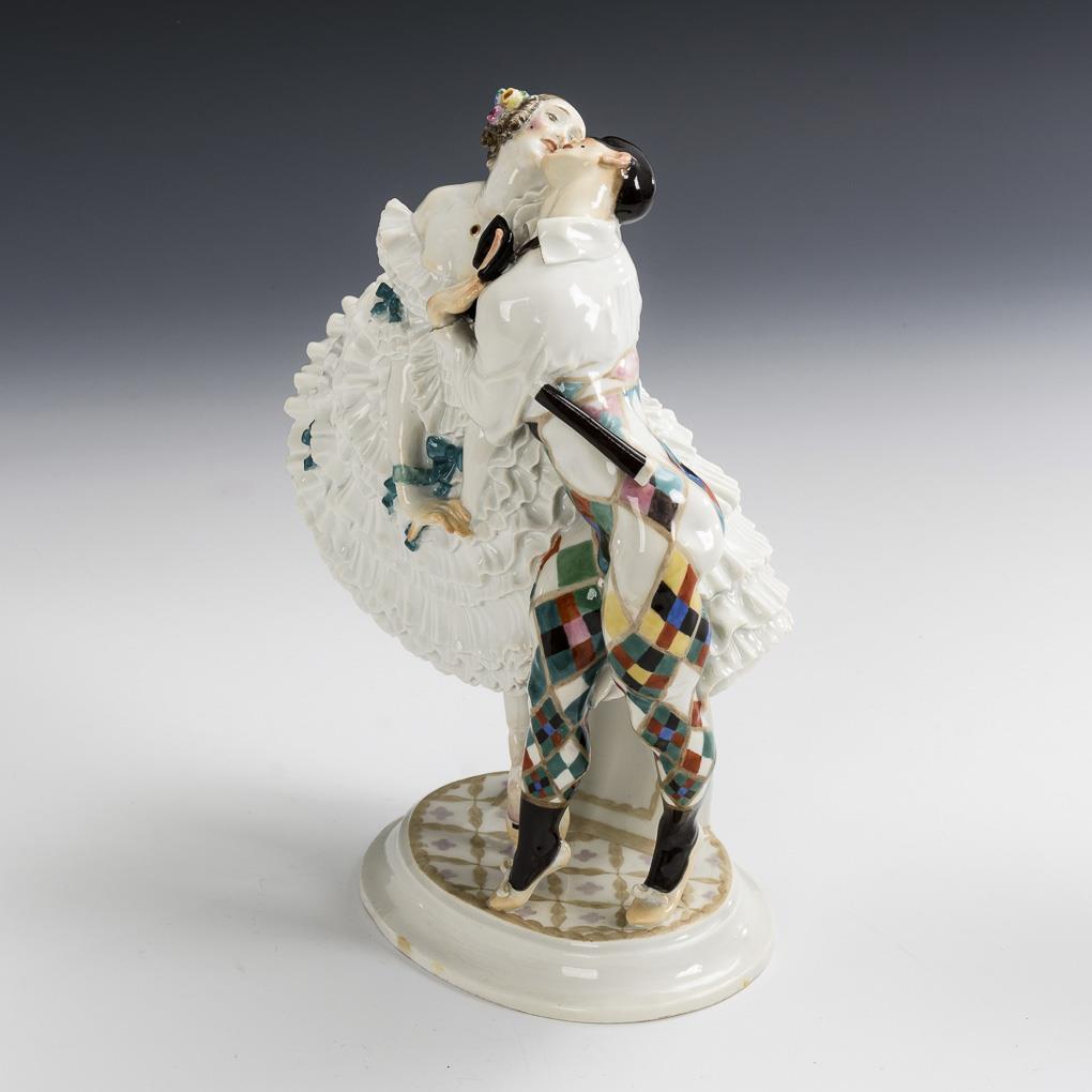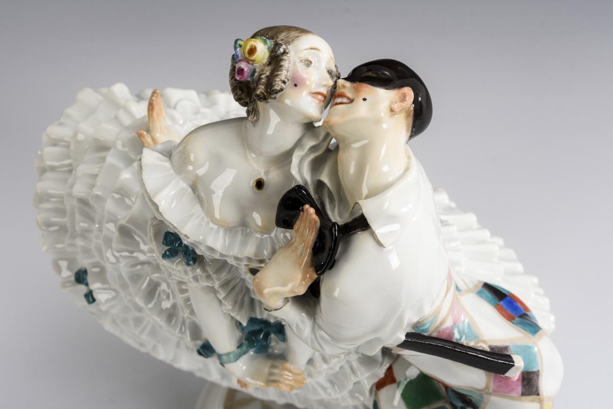 Figurengruppe aus dem Russischen Ballett: Harlekin und Columbine. Meissen.