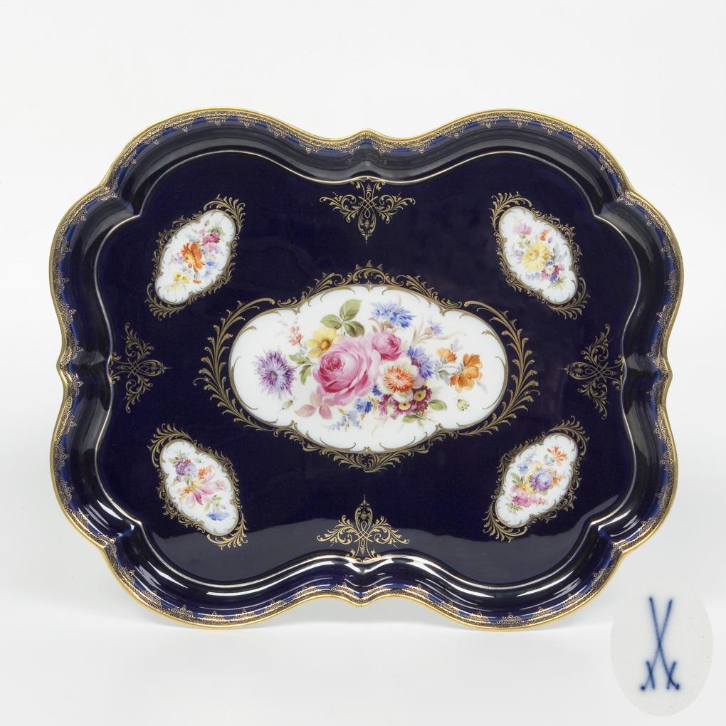 Kobalt-Prunk-Tablett. Meissen.
