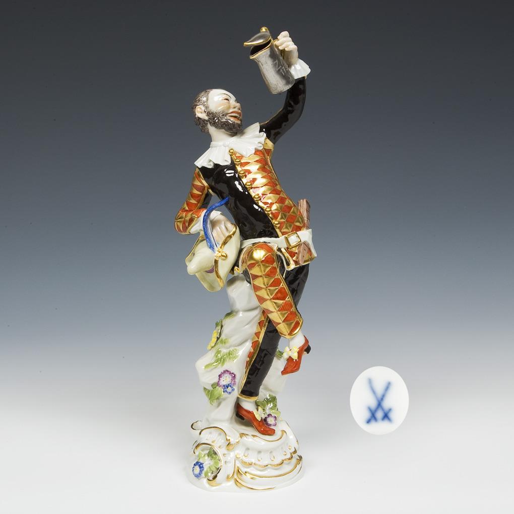 Inschrift auf dem Krug: Z steht für Zanni, eine Figur der Commedia dell'arte. M steht für Joseph Ferdinand Müller, Königlich-Polnischer und Kurfürstlich-Sächsischer Hofkomödiant, der 1738 in Dresden eintraf. Meissen-Manufaktur-Preis: 4990,- Euro * Partnerauktion Bergmann.