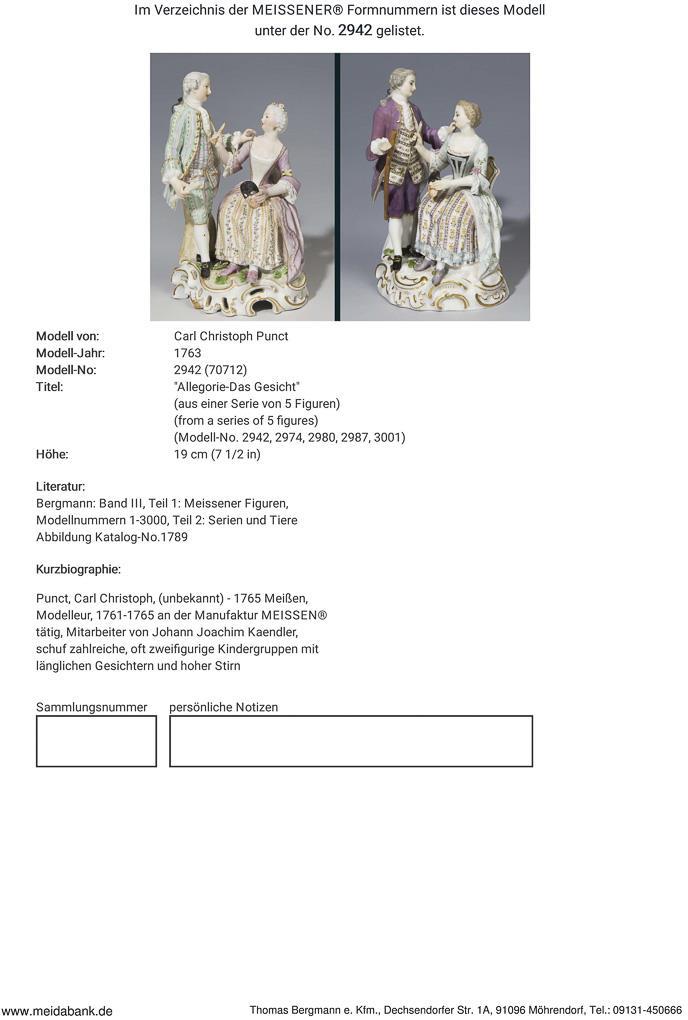Punct, Modelleur, 1761-1765 an der Manufaktur tätig, 1763 Hofbildhauer, Mitarbeiter von Johann Joachim Kaendler * Partnerauktion Bergmann.
