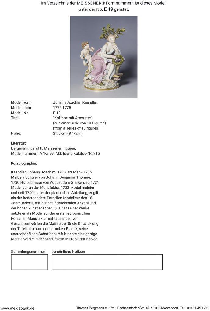 Kaendler, Hofbildhauer und Modelleur, seit 1731 an der Manufaktur, ab 1749 Leiter der plastischen Abteilung * Partnerauktion Bergmann.