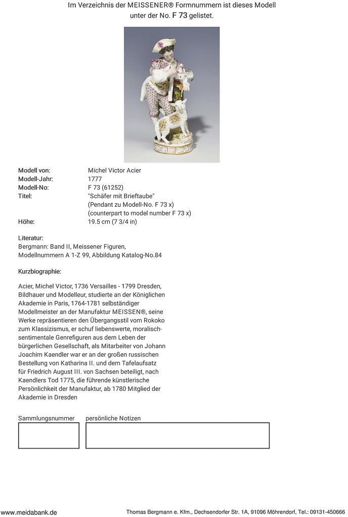 Acier, Bildhauer und Modelleur, studierte an der Akademie in Paris. 1764-1781 selbständiger Modellmeister in Meissen. Meissen-Manufaktur-Preis: 4690,- Euro * Partnerauktion Bergmann.
