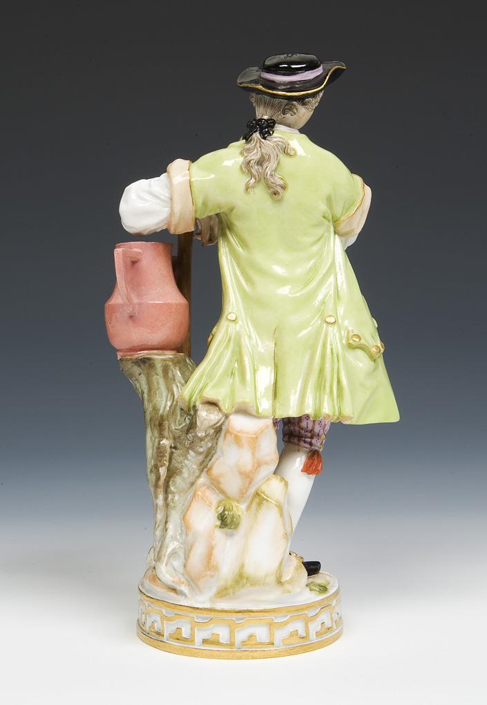 Modell von Michel Victor Acier 1770. Pendant zu Modell-Nr. C 68. Farbig bemalt, gold staffiert. Ritzmarke, Pressmarke, Malermarke, Schwertermarke. Henkel, eine Rockecke restauriert, Blättchen bestoßen.