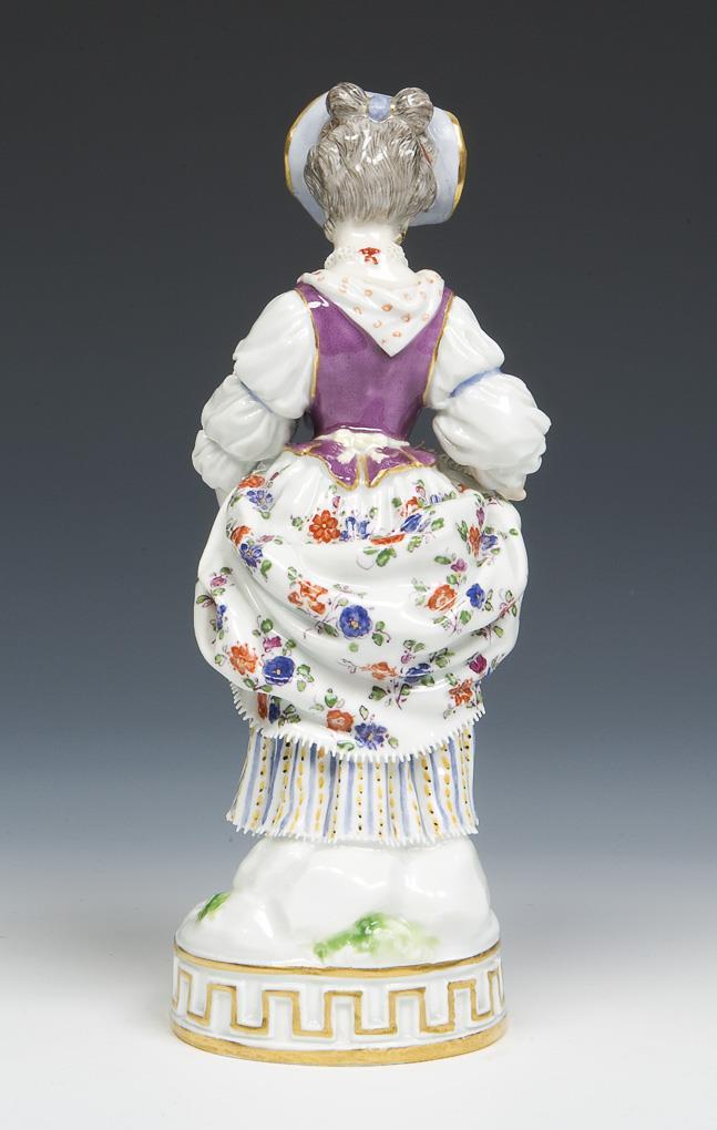 Modell von Michel Victor Acier 1778. Pendant zu Modell-Nr. F 84. Farbig bemalt, gold staffiert. Ritzmarke, Pressmarke, Malermarke, Schwertermarke.
