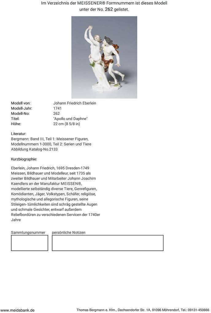 Eberlein, Bildhauer und Modelleur, seit 1735 als zweiter Bildhauer und Mitarbeiter Kaendlers an der Manufaktur * Partnerauktion Bergmann.