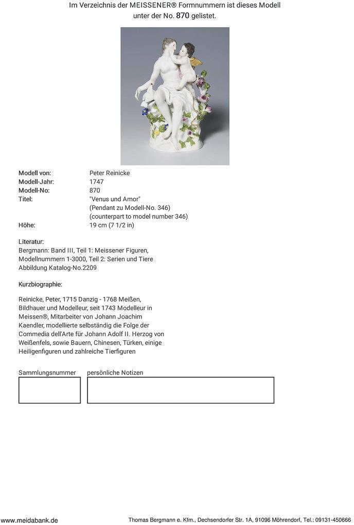 Reinicke, Bildhauer, seit 1743 Modelleur in Meissen, schuf zahlreiche Figuren, Mitarbeiter von Johann Joachim Kaendler * Partnerauktion Bergmann.