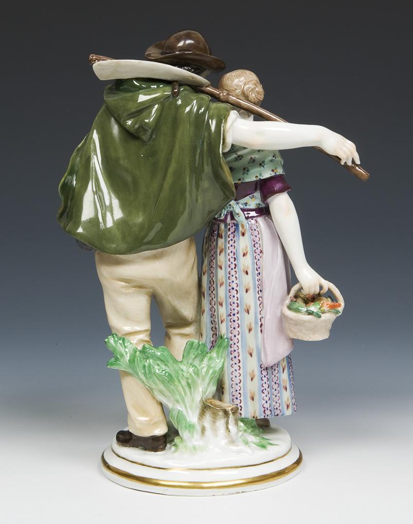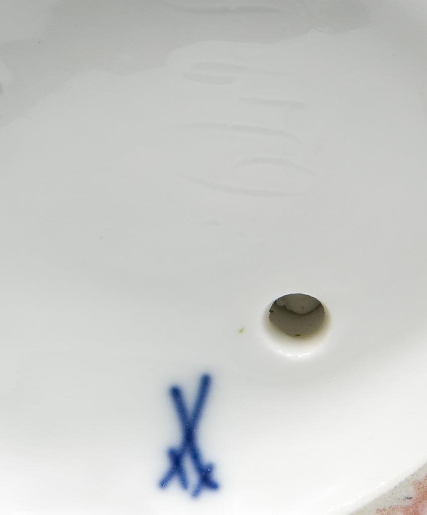 Modell von Maximilien Bourgeois 1895. Farbig bemalt, gold staffiert. Ritzmarke, Pressmarke, Schwertermarke. Hut, Sichel, Cape partiell, einige Blättchen restauriert.