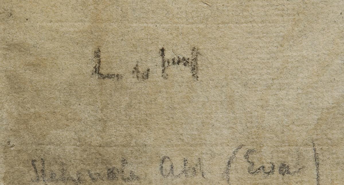 Bezeichnet, Passepartout, neuwertiger verglaster Rahmen. Partiell wellig, am oberen Rand eine kleine Ecke eingerissen, oben und seitlich am Rand je ein Riss.