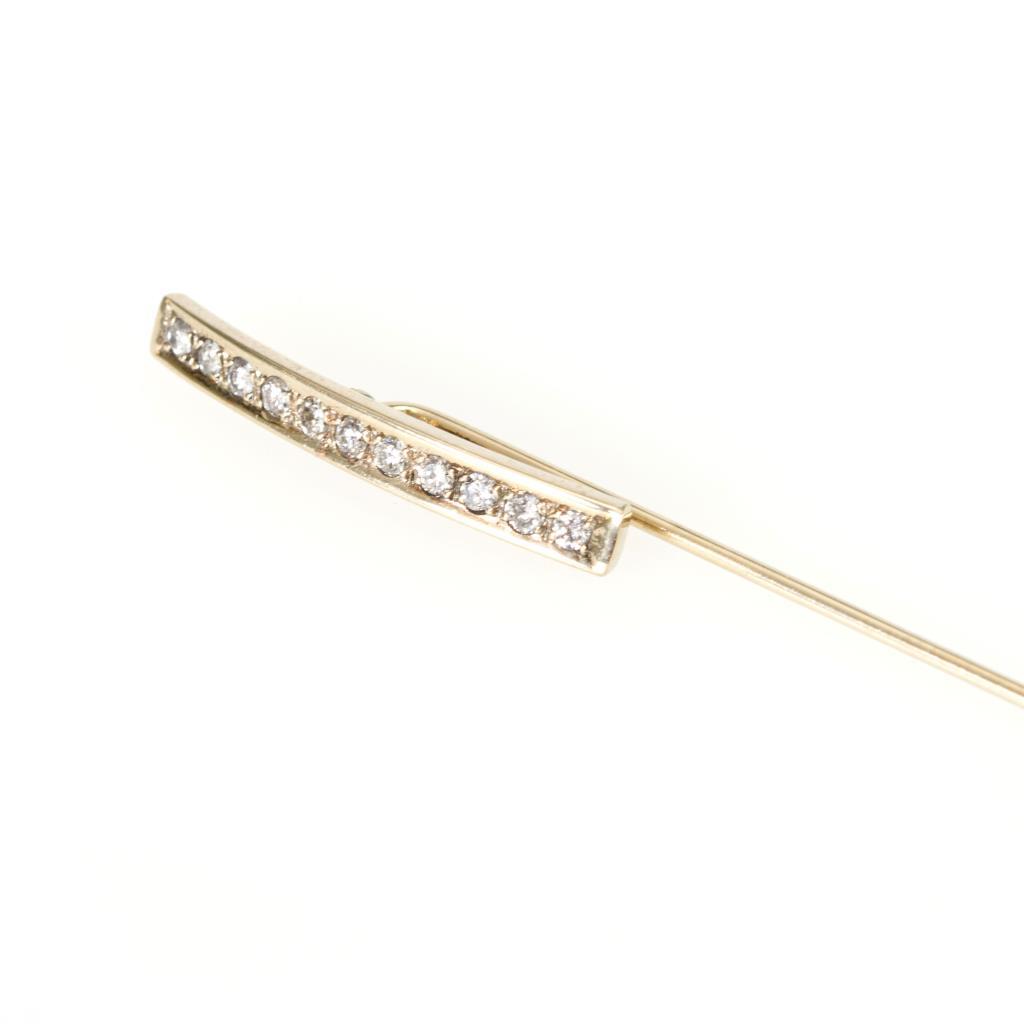 11 kleine, in Steg gefasste Diamanten an langer Nadel.