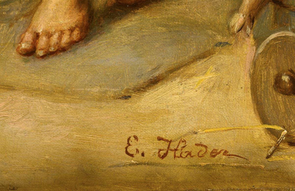 Öl/Leinwand. Rechts unten signiert, verso bezeichnet und als "Das Kleeblatt" betitelt mit Adresse in Berlin. 19. Jh.