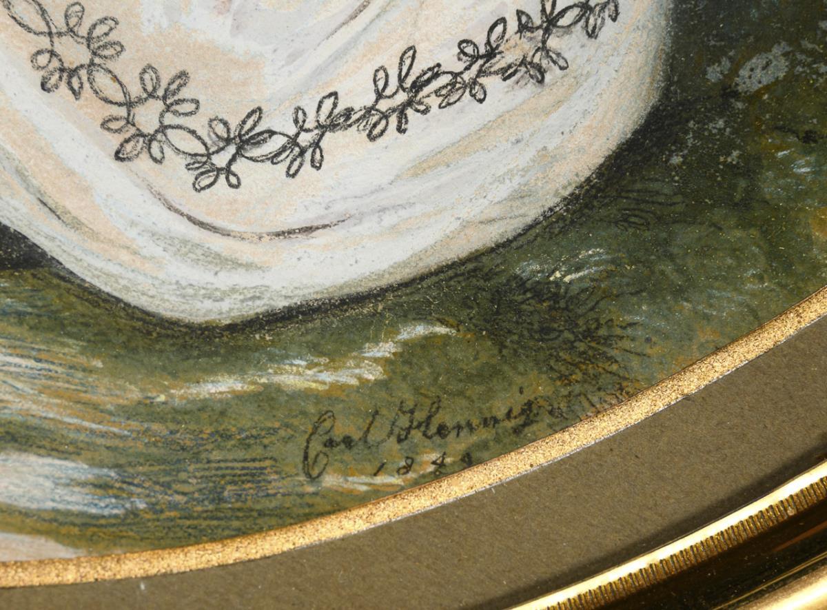 Mischtechnik aus Gouache und Pastell. Rechts unten signiert. 1849.