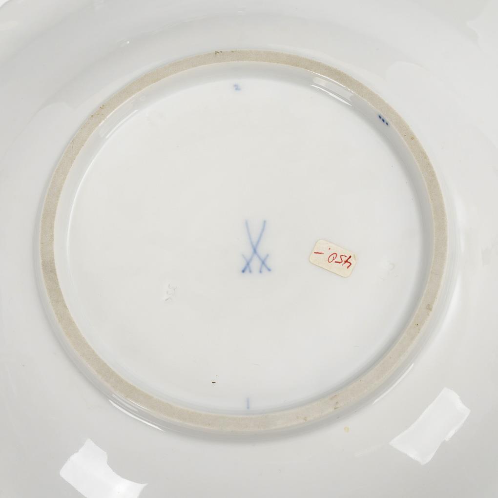 Schale mit teils goldbronziertem Blattrelief, kobaltblauem Teilfond und Streublümchenmalerei.
