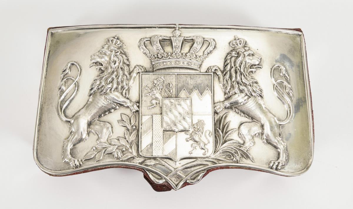 Seltene Patronentasche eines bayrischen Offiziers, mit Silberdeckel.
