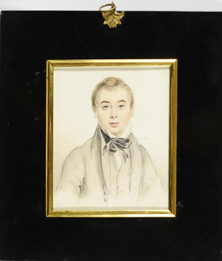 Kleines Biedermeierbildnis eines jungen Mannes.