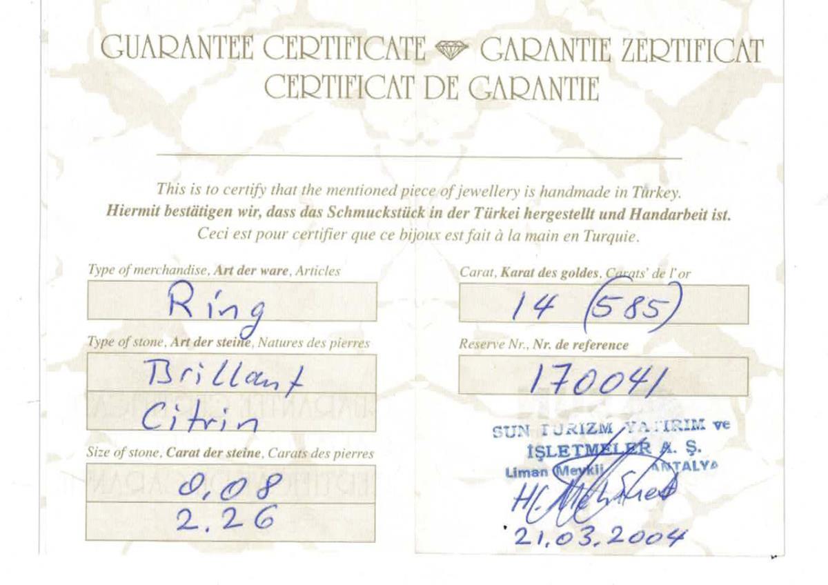 Ring mit Citrin und Brillanten.