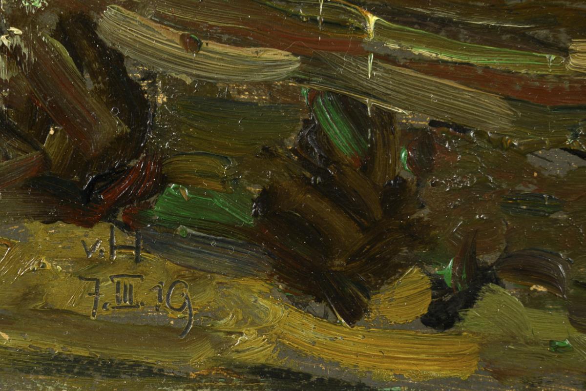 Öl/Malkarton. Links unten monogrammiert. 7. III. (19)19.