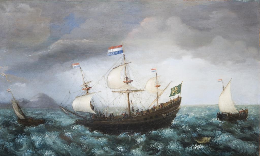 Holländisches Schiff und Boote auf See