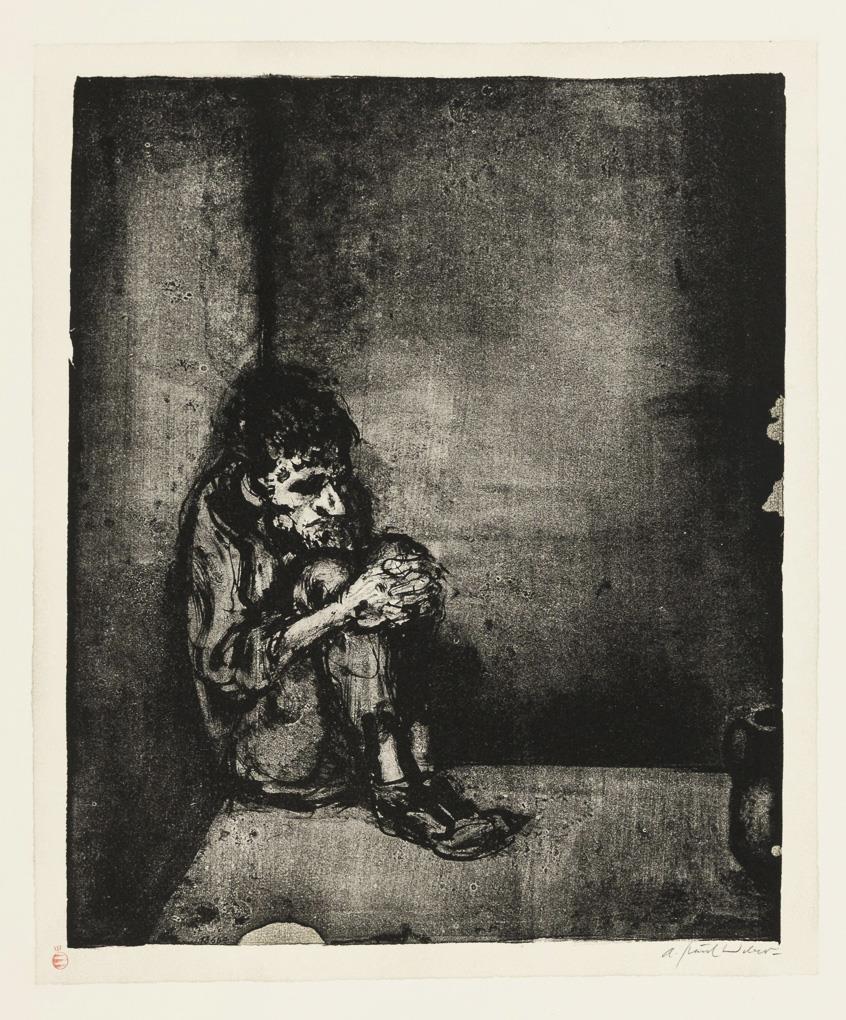 Lithografie auf Bütten. Im Druck signiert, verso violetter Stempel "Nachlass A Paul Weber" mit Bleistiftsignatur "Christian Weber", roter Stempel "Clan-Presse". [1964].