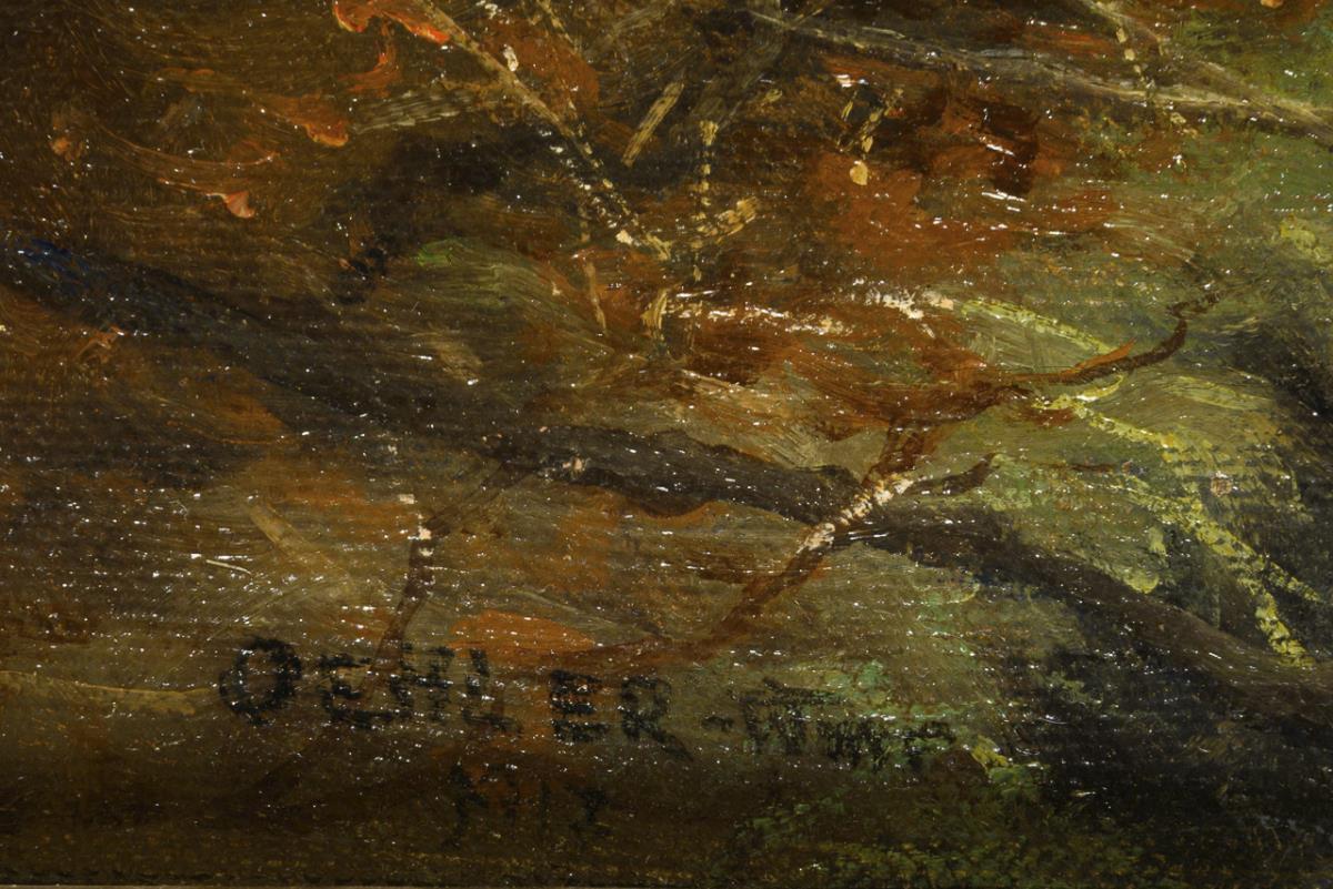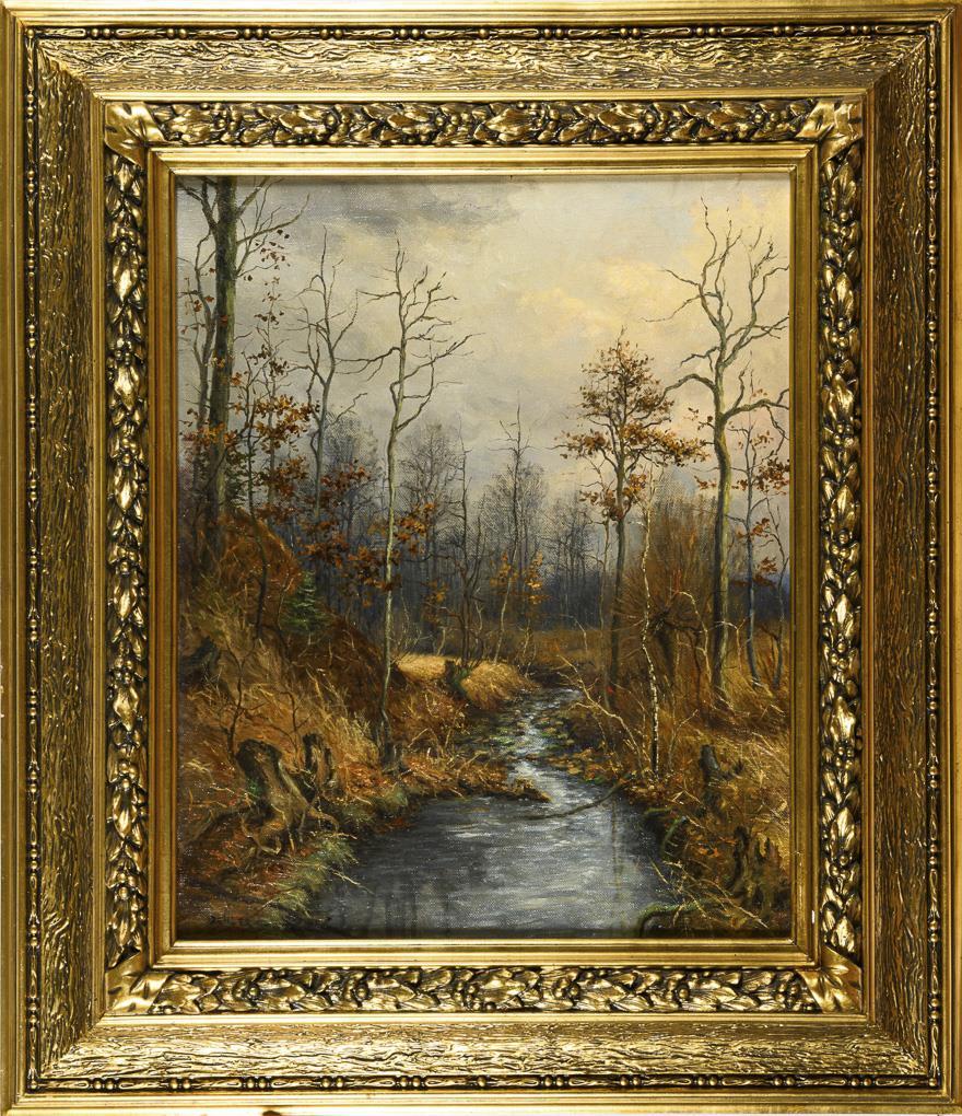 Öl/Leinwand. Links unten signiert mit Zusatz Weimar, verso als "Hengsbach" betitelt. 1917.