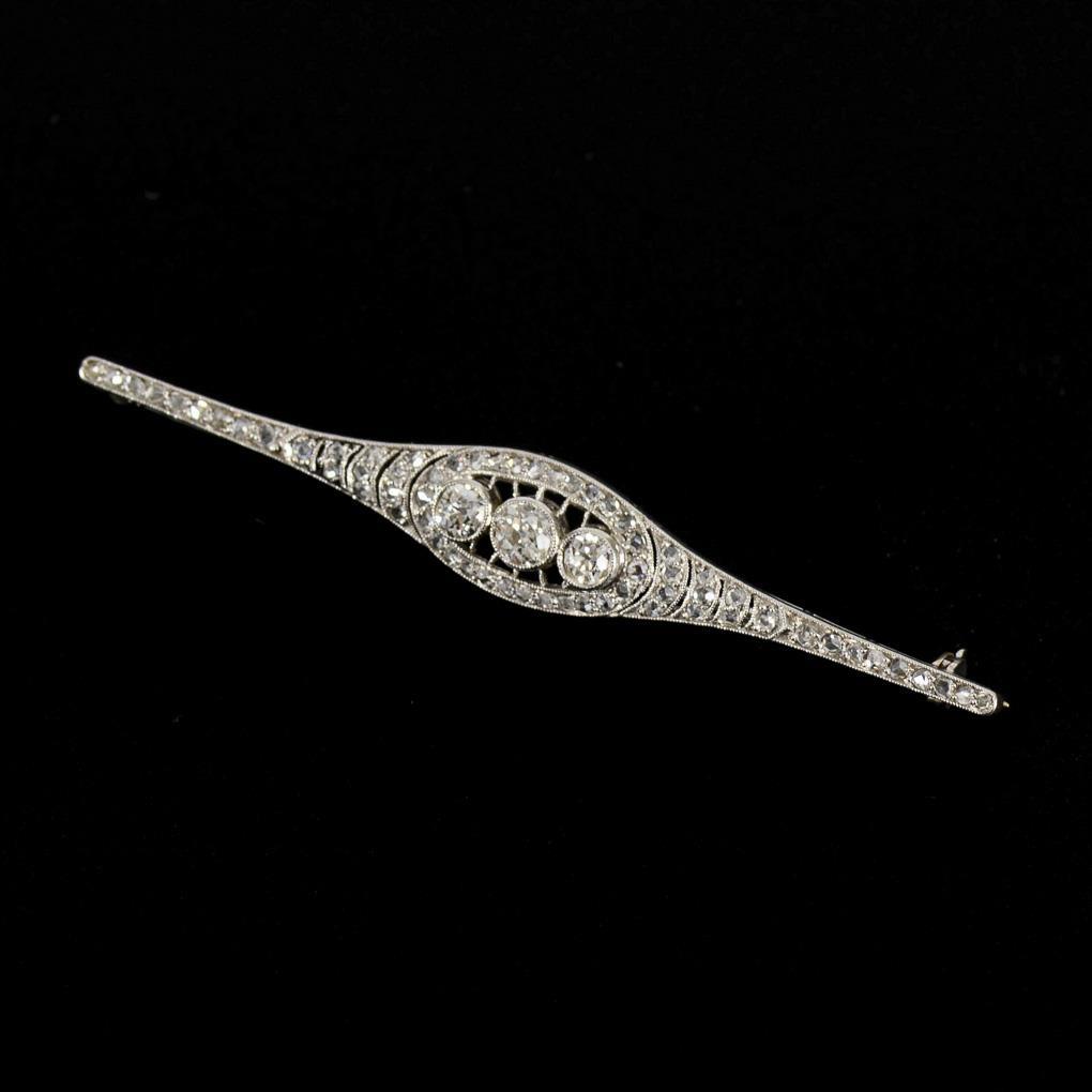 Art-déco-Brosche mit Altschliff-Brillanten und Diamantrosen.