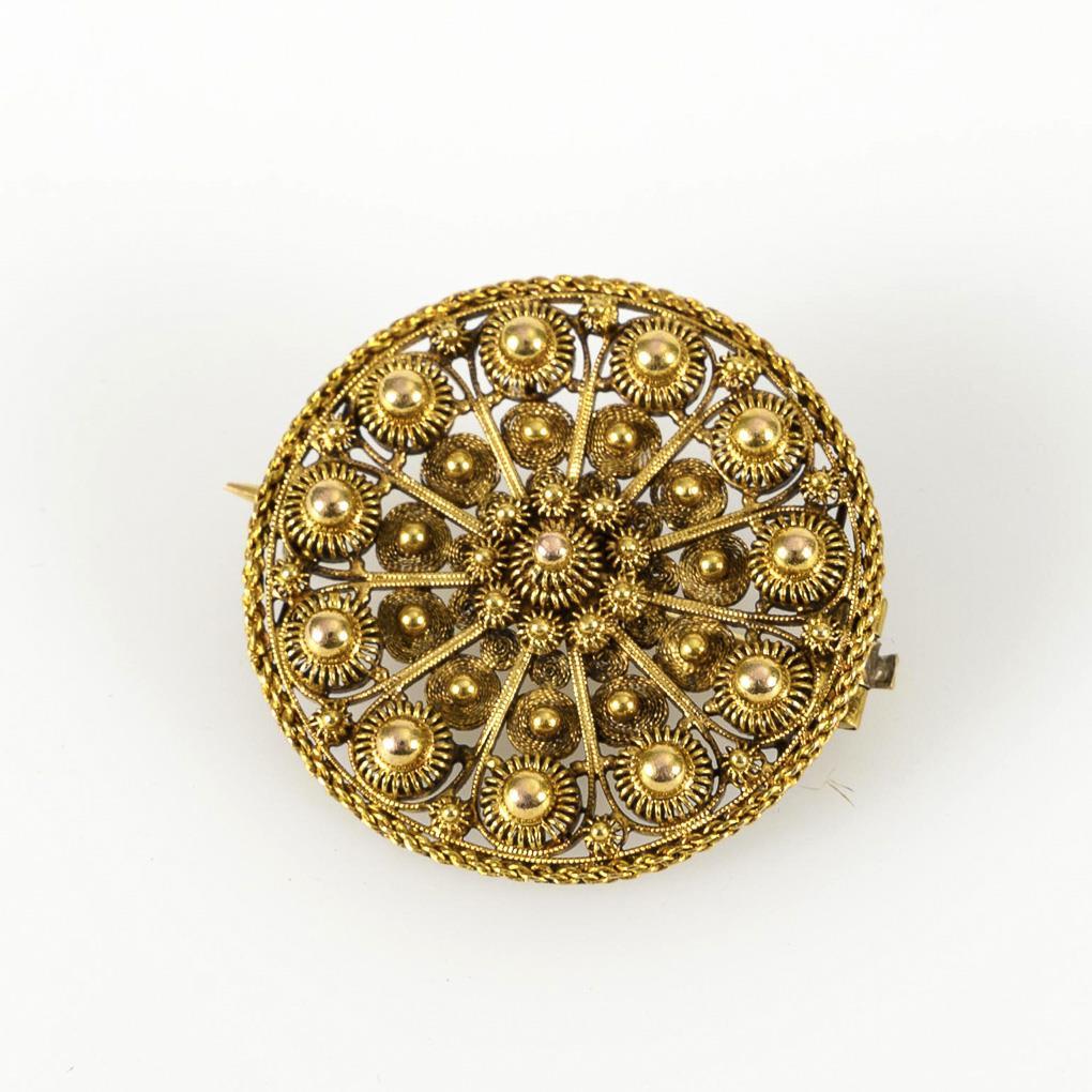 Filigranbrosche mit Cannetille- und Granalienzier. Hakenverschluss.