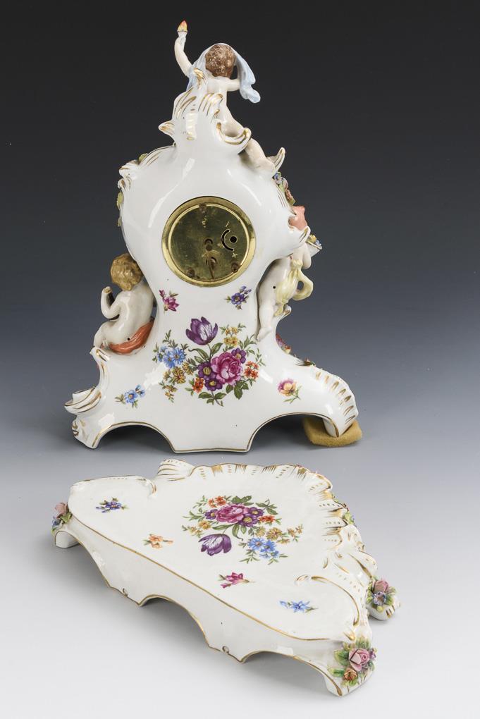 Figürliche Porzellanuhr. Sitzendorf.