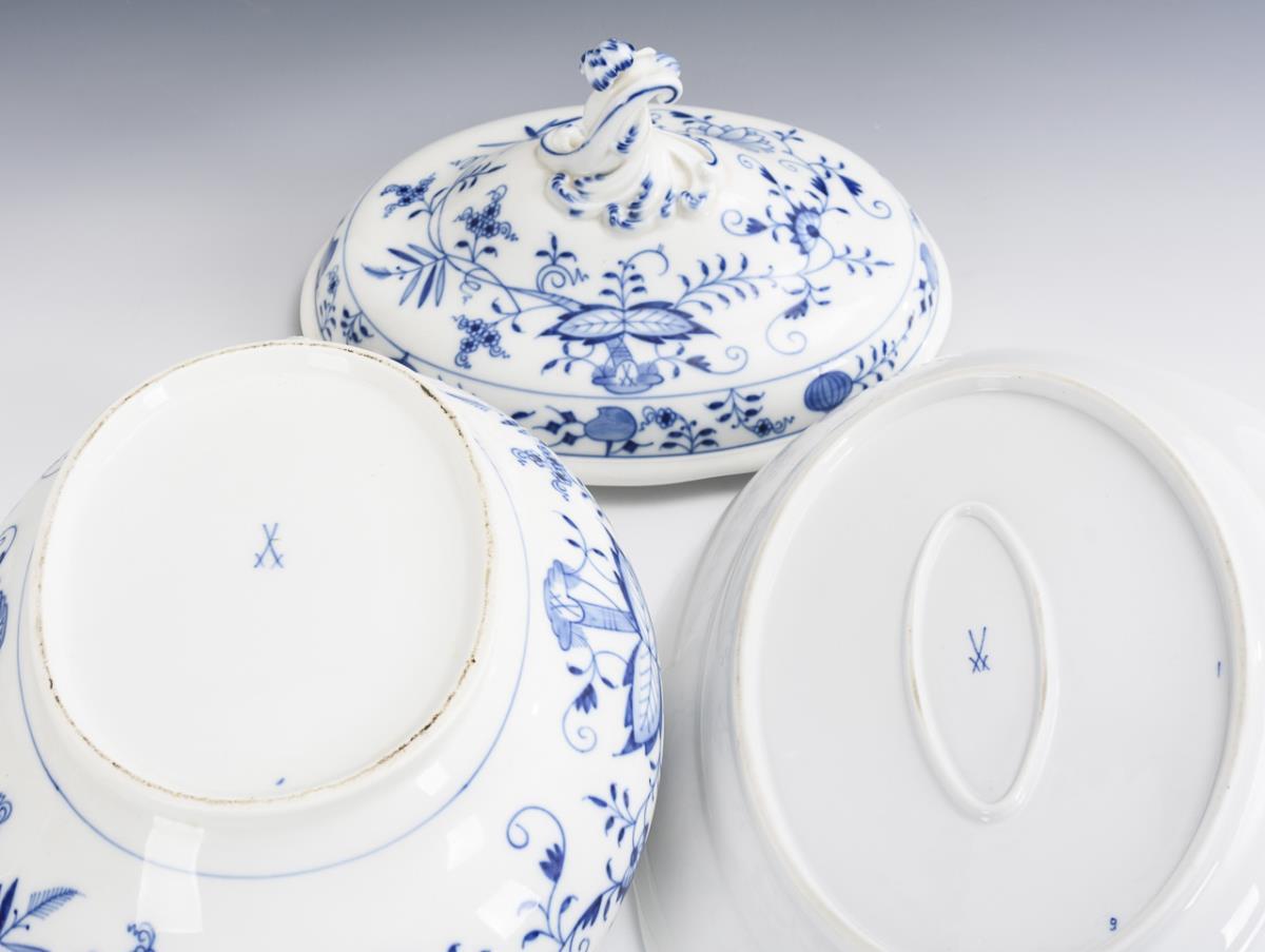 Zwiebelmuster-Terrine mit Presentoir. Meissen.