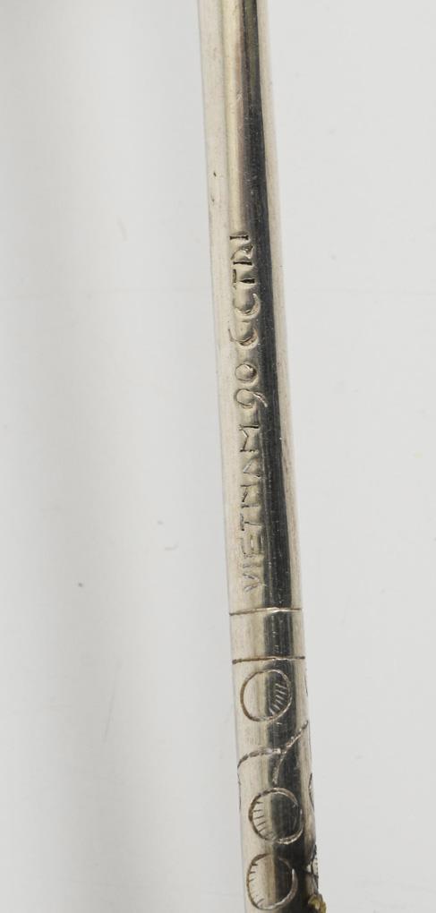Blattartig verzierte Löffel mit langem Trinkröhrchen als Stiel.