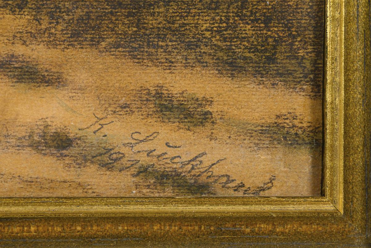 Bleistiftzeichnung, teils aquarelliert. Rechts unten signiert. 1918.
